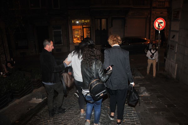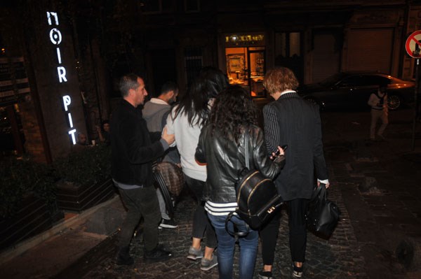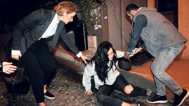 Mekan çıkışı yurumekte zorlanan şarkıcı, yanındaki arkadaşının dengesini kaybedip yere kapaklanmasıyla şoke oldu.