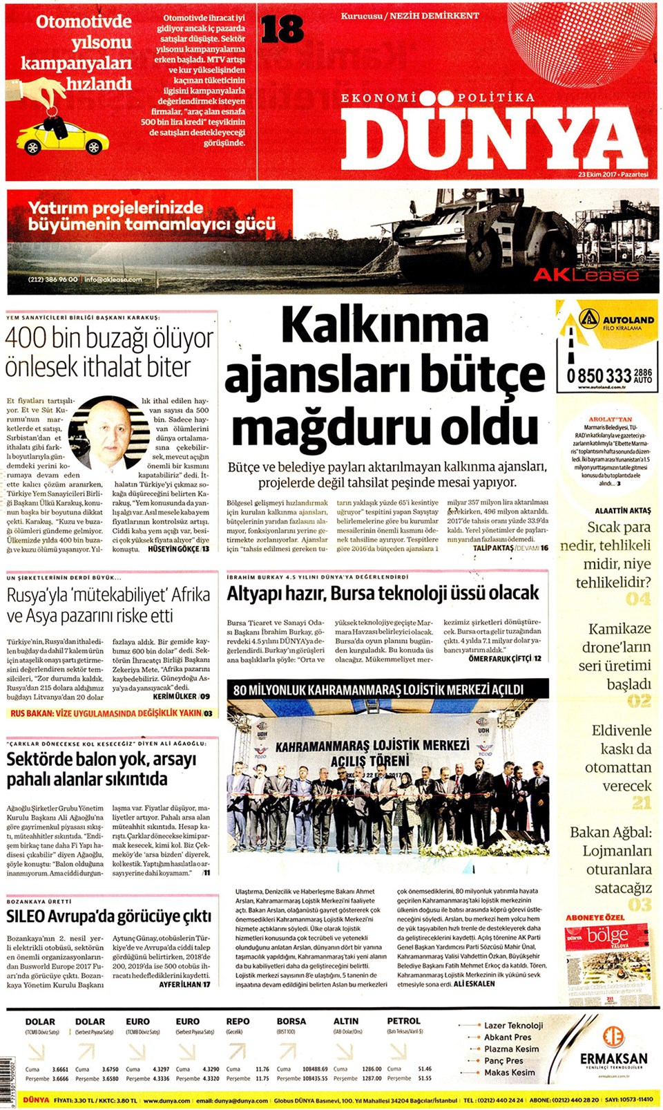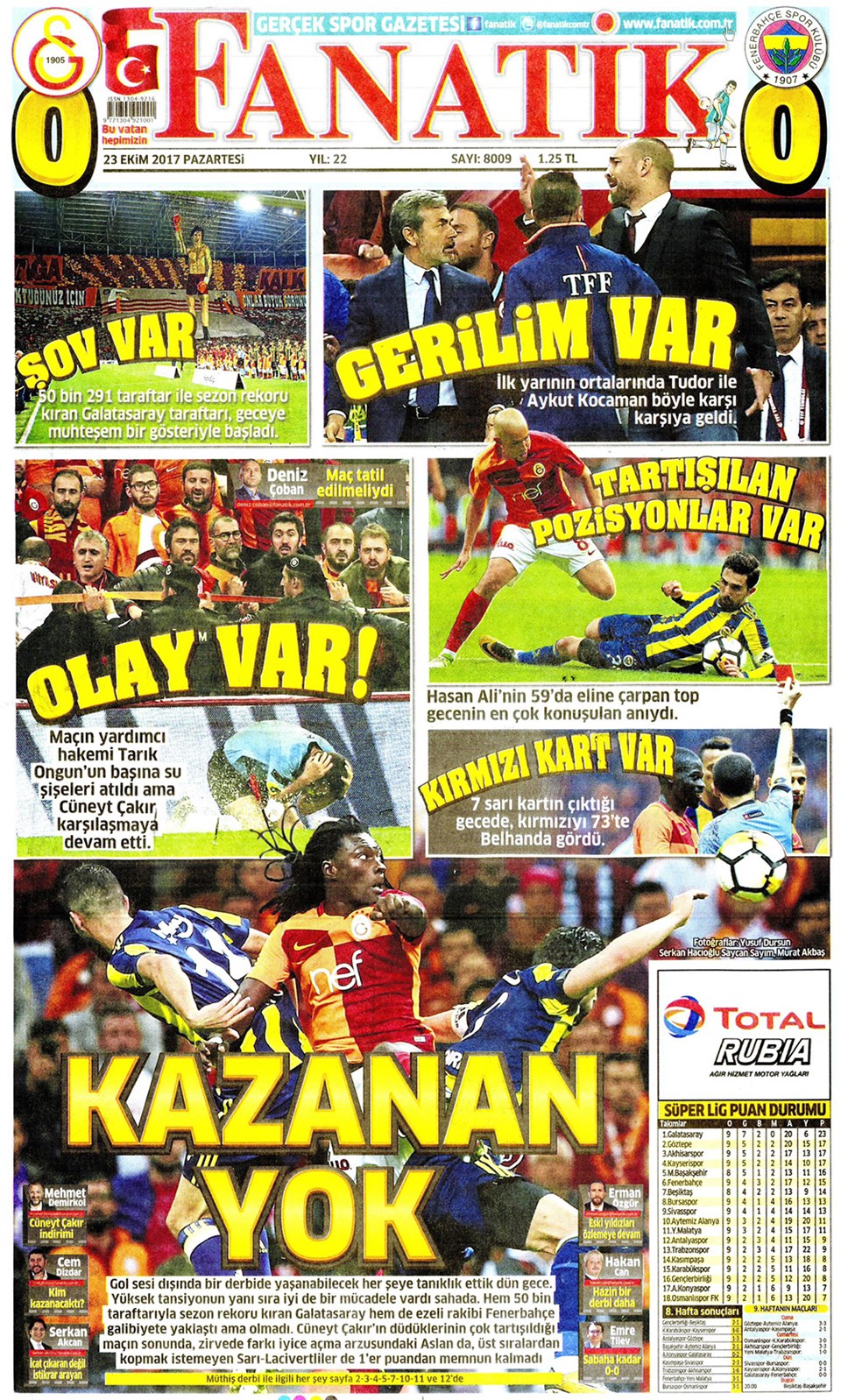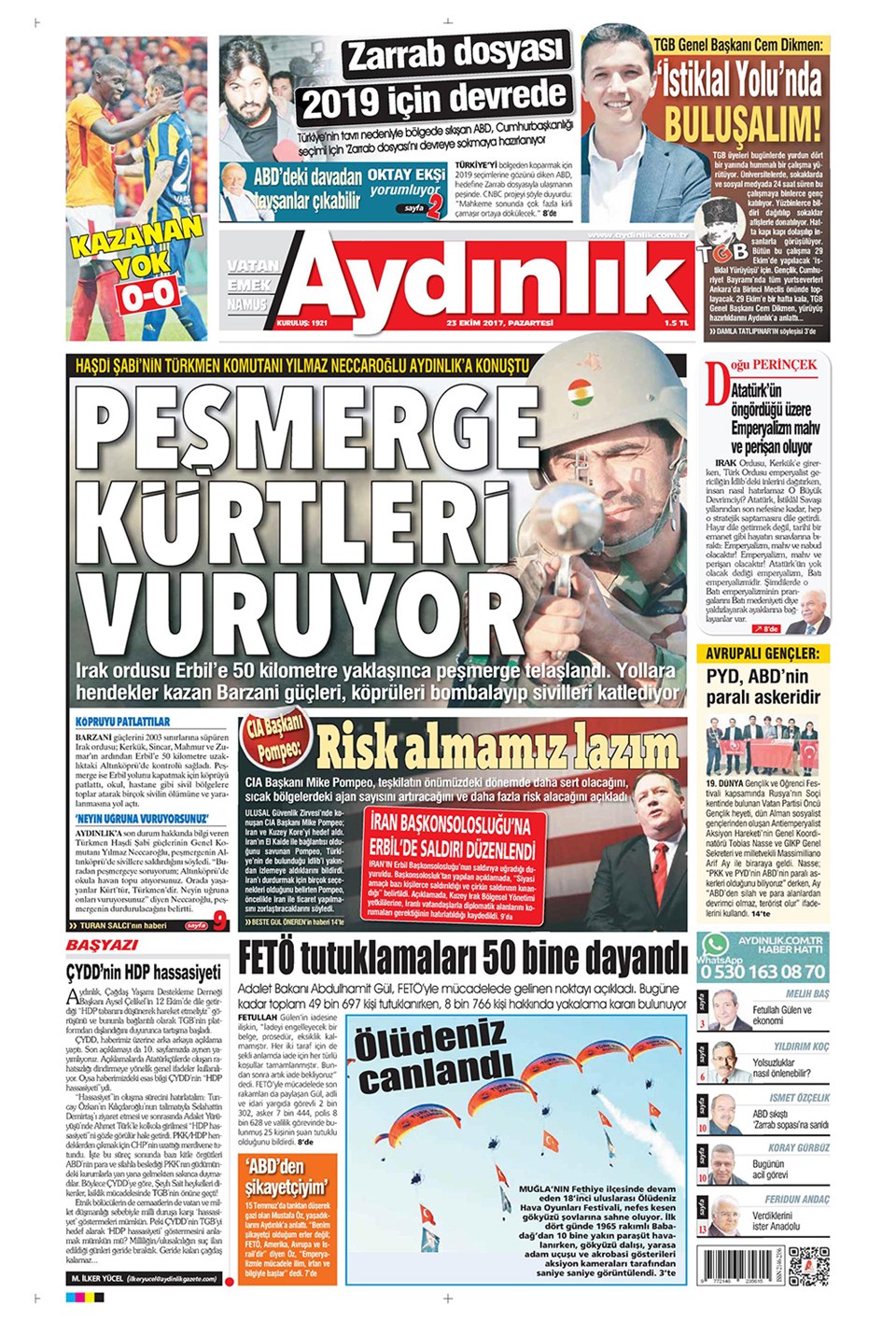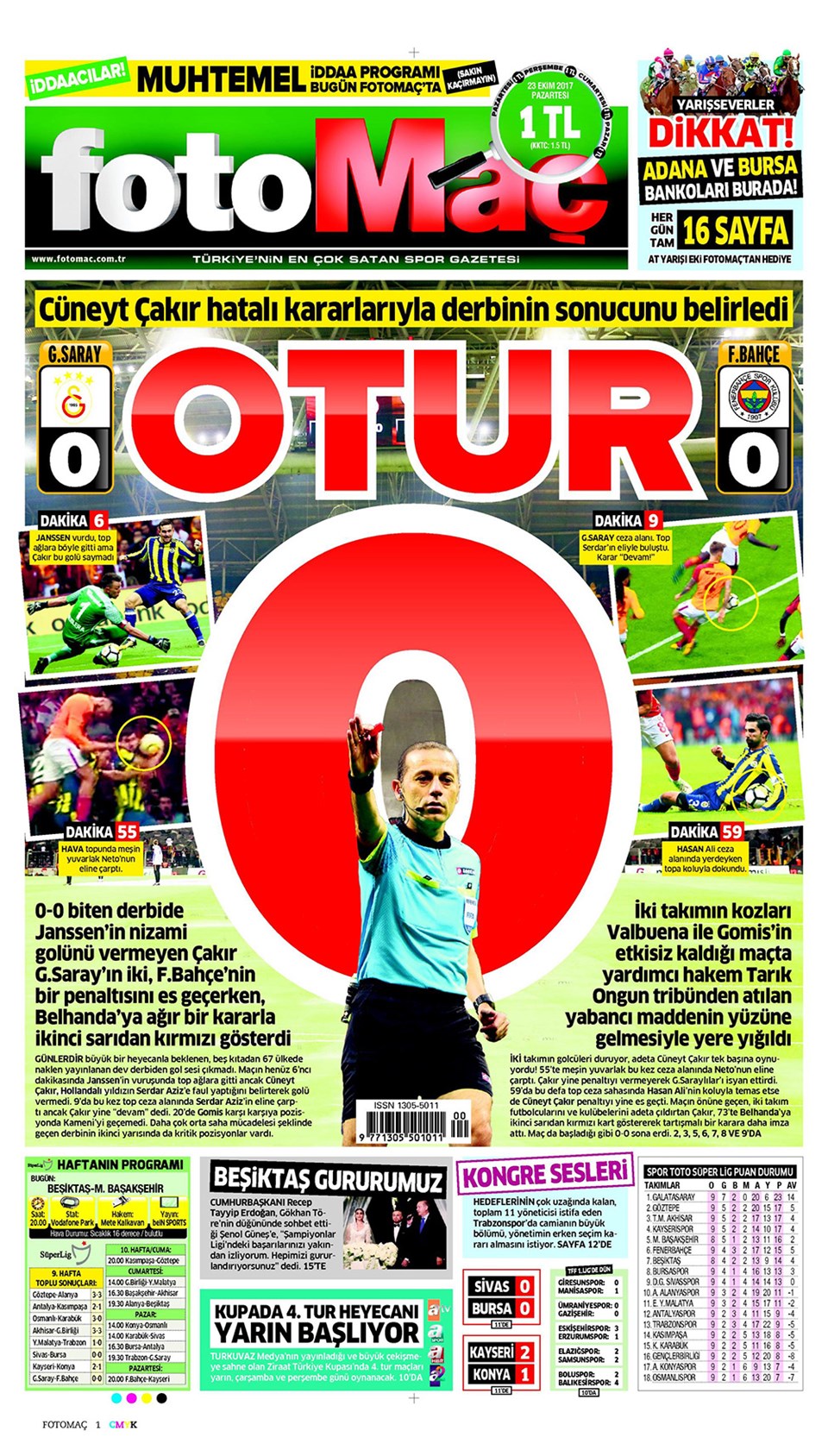 Özet (TL;DR) @ 2017-10-23 10:10:59.112273: “Bugünkü gazete manşetlerinde neler var? Gazeteler Türkiye ve dünya gündemine ilişkin bugün hangi manşetleri attı? Hangi haberler gazete manşetlerinde geniş yer buldu? Gazetelerin birinci sayfalarında…