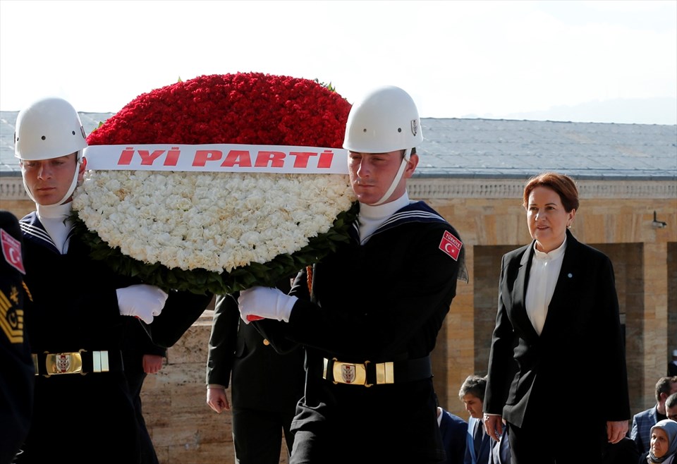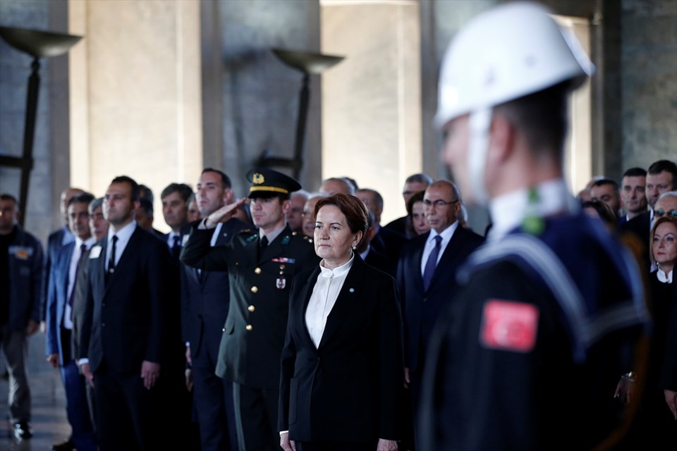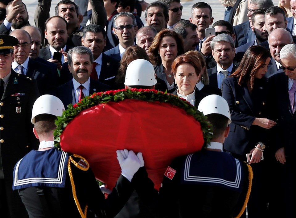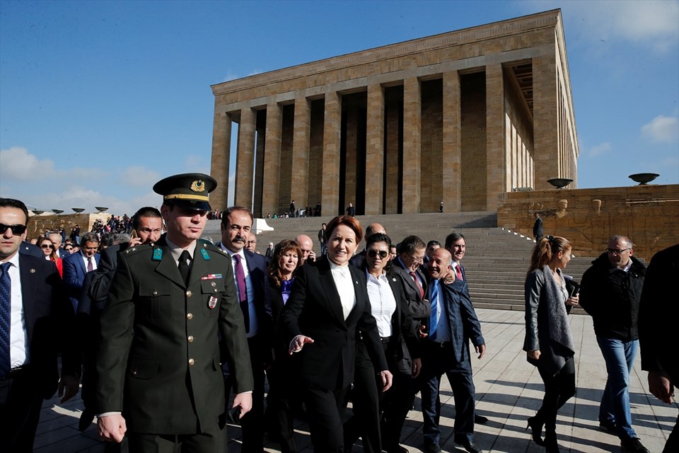 İlk olarak Anıtkabir'e gelen Akşener, Aslanlı Yol'dan yuruyerek, Ataturk'un mozolesine çelenk bıraktı.