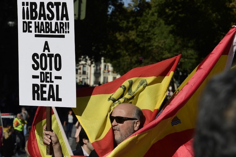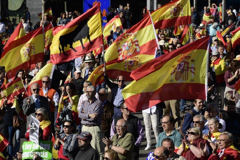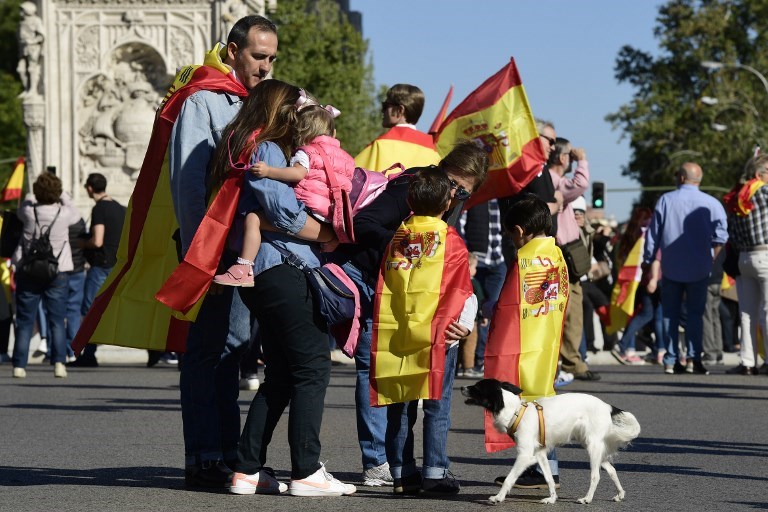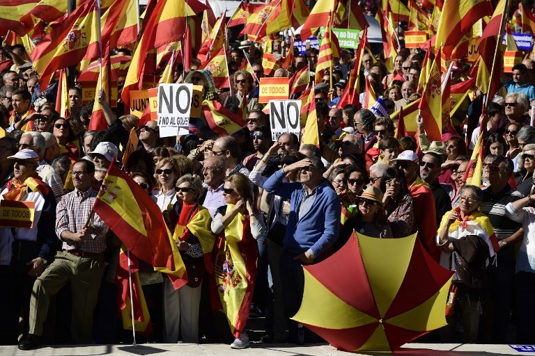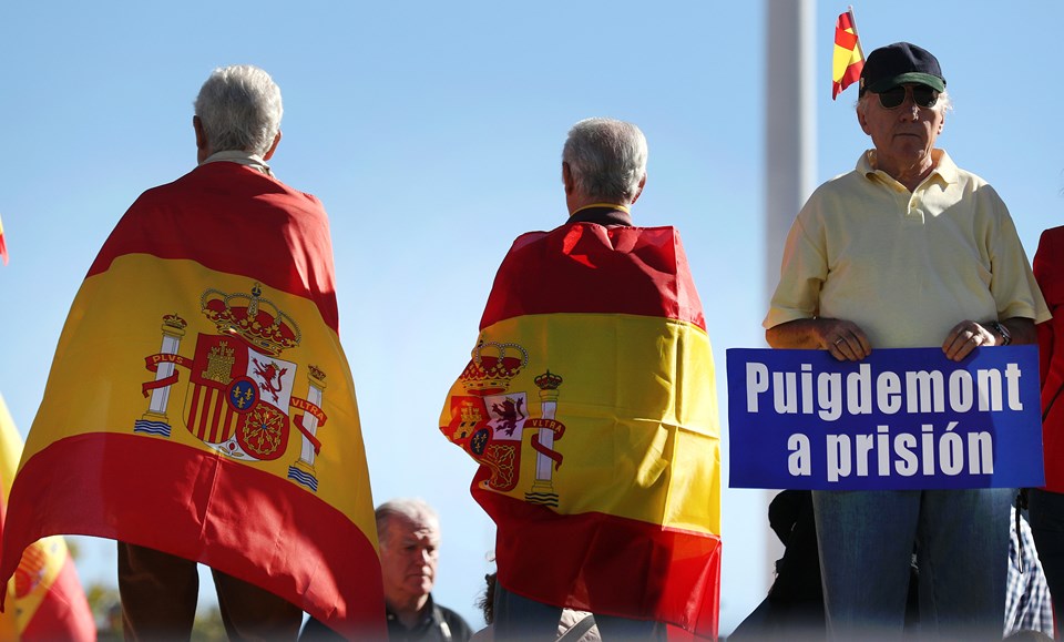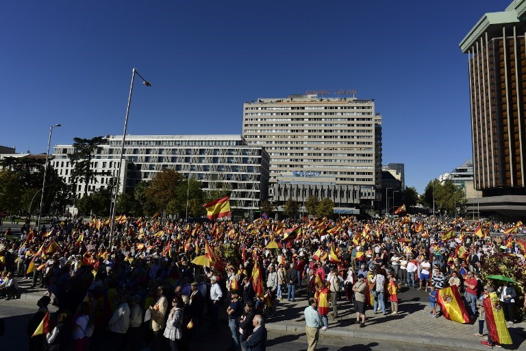 Başkent Madrid'de birlik yanlıları sokaklara çıktı. Kolomb Meydanı'ndaki gosterilere yoğun katılım oldu.