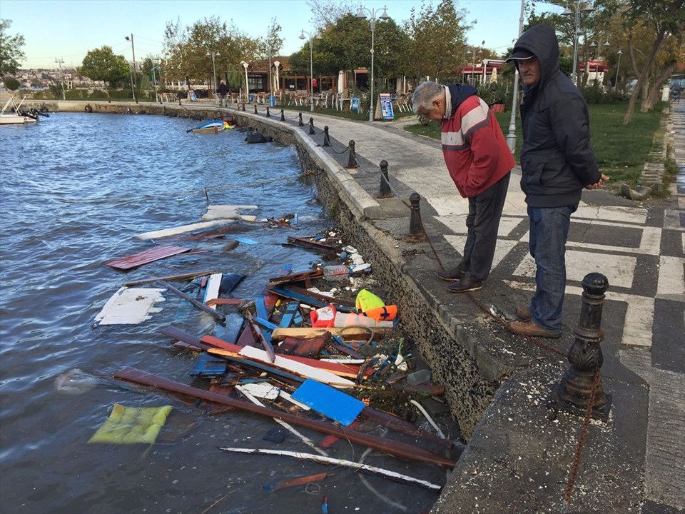 Ayrıca lodos nedeniyle sahil kordon boyundaki bir barakanın da devrildiği ve denizde kirlilik oluştuğu goruldu.
