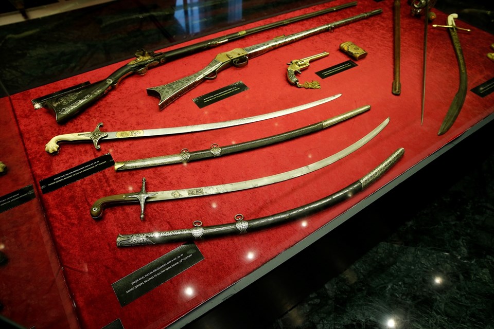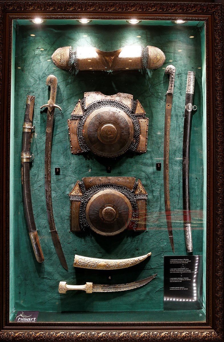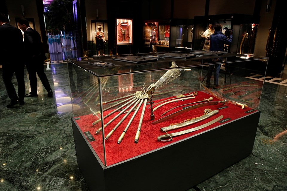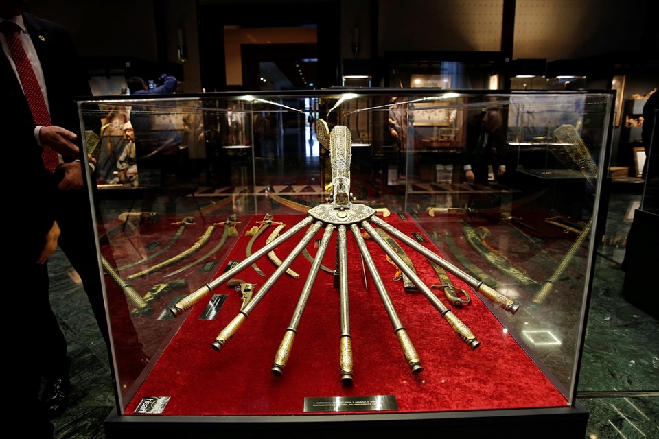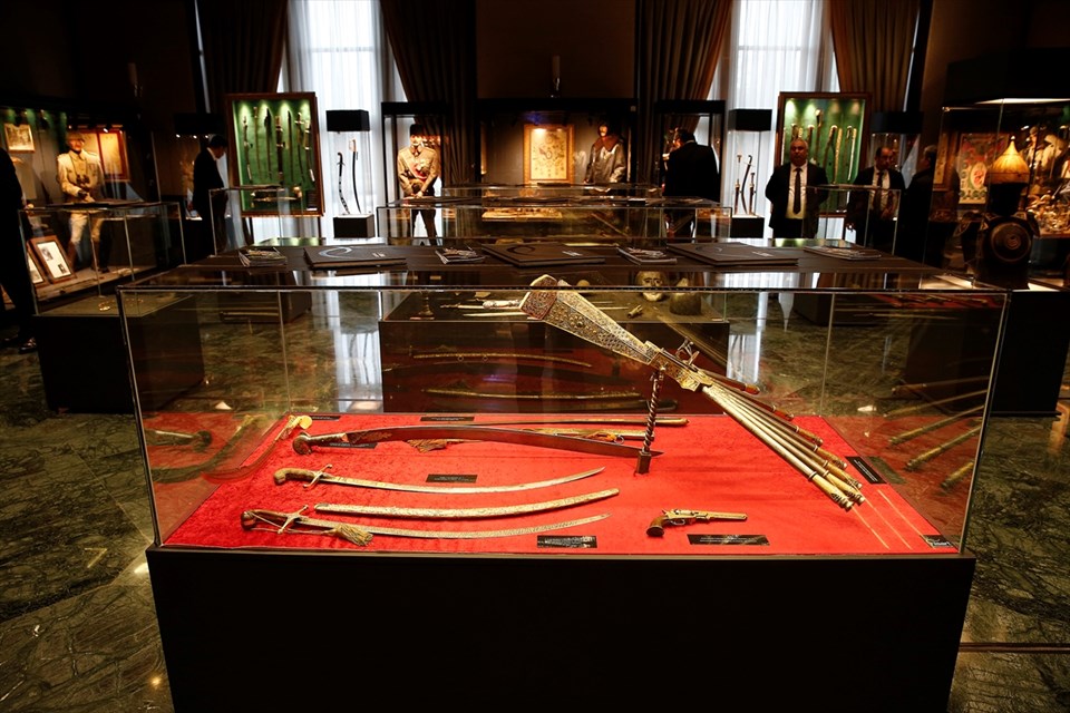 Kulliye'nin ana bina guney girişinde "Geçmişten Gunumuze 29 Ekim" temasıyla açılan sergide, Kanuni Sultan Suleyman'ın kılıcı, Yıldırım Bayezid'in zırhı, Sultan İkinci Abdulhamit'in kılıç ve tufekleri, Sultan Abdulmecit'in şehzade kılıcı, Sultan İkinci Mahmut'a ait 7 namlulu tufek ile Selçuklular doneminden kalan kılıçlar yer alıyor.