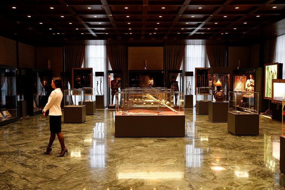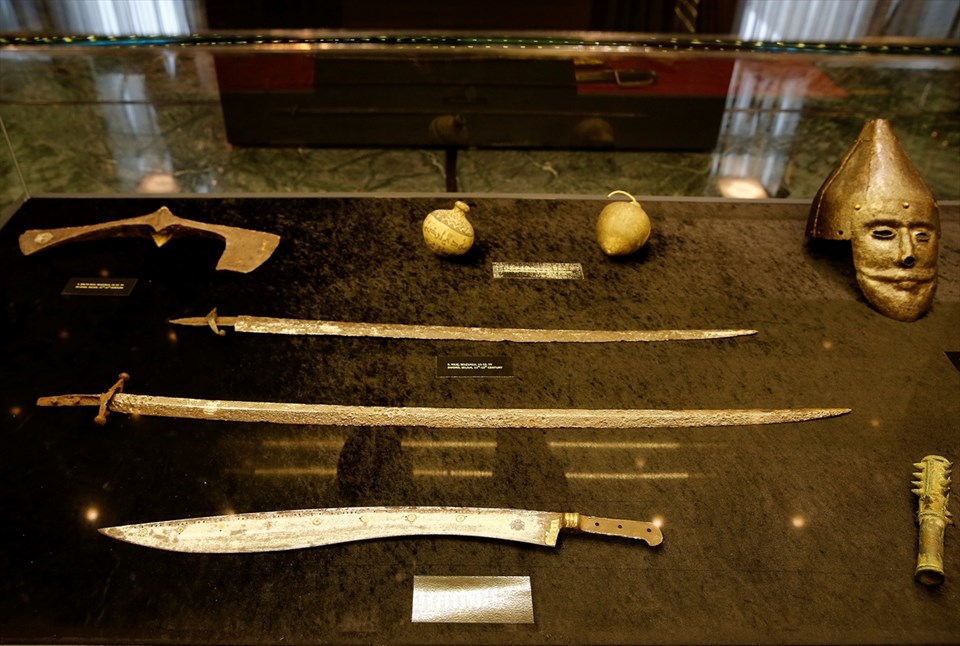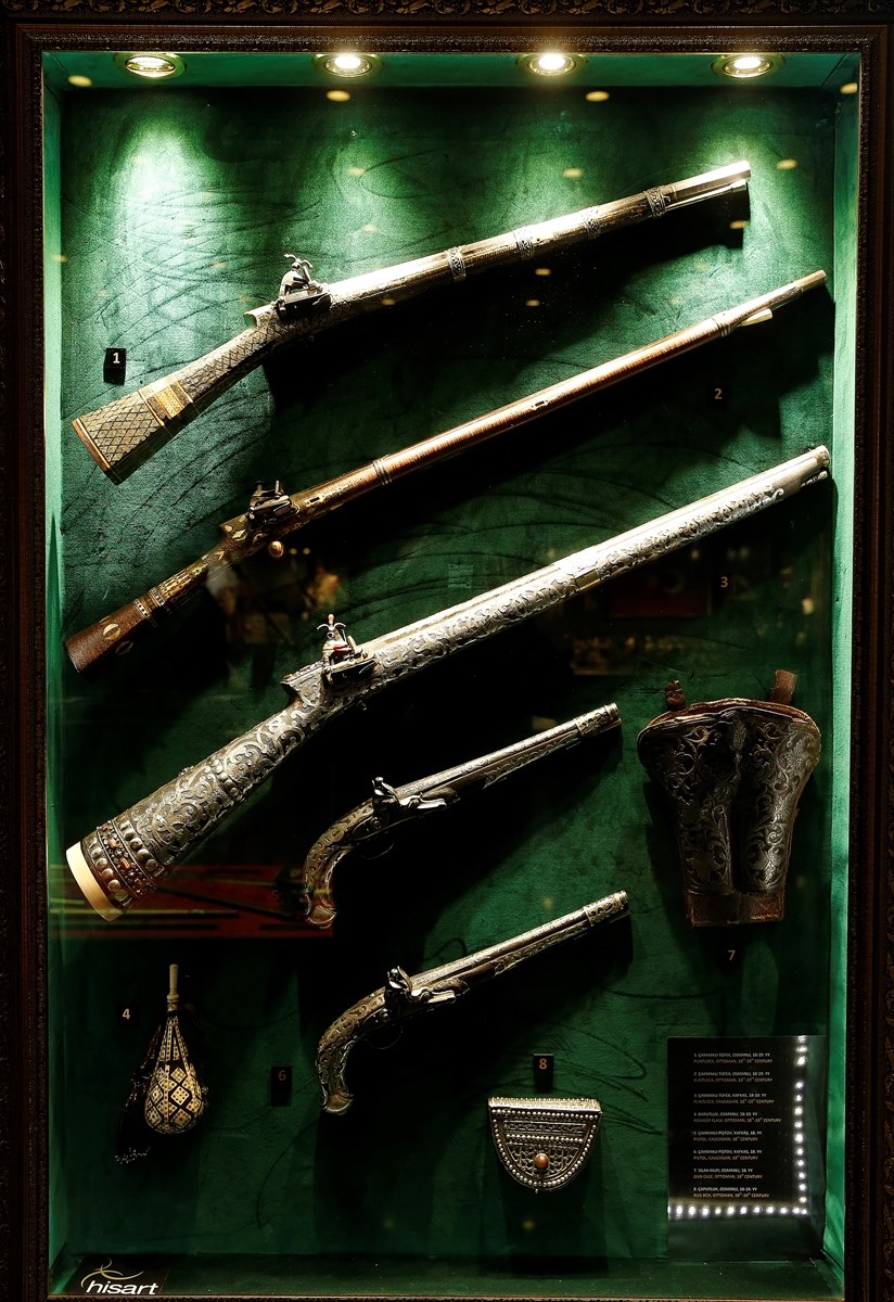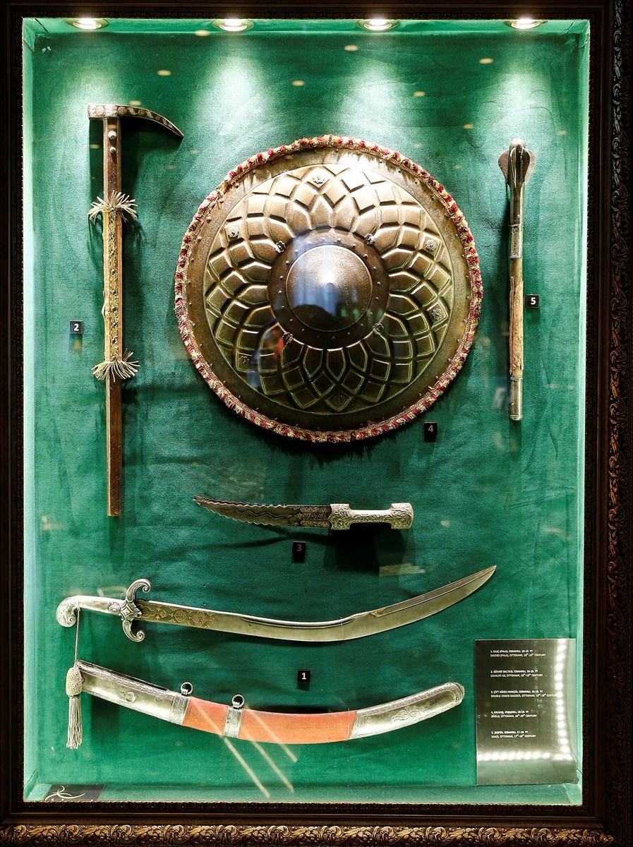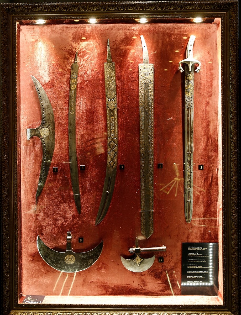 Kulliye'nin ana bina guney girişinde "Geçmişten Gunumuze 29 Ekim" temasıyla açılan sergide, Kanuni Sultan Suleyman'ın kılıcı, Yıldırım Bayezid'in zırhı, Sultan İkinci Abdulhamit'in kılıç ve tufekleri, Sultan Abdulmecit'in şehzade kılıcı, Sultan İkinci Mahmut'a ait 7 namlulu tufek ile Selçuklular doneminden kalan kılıçlar yer alıyor.