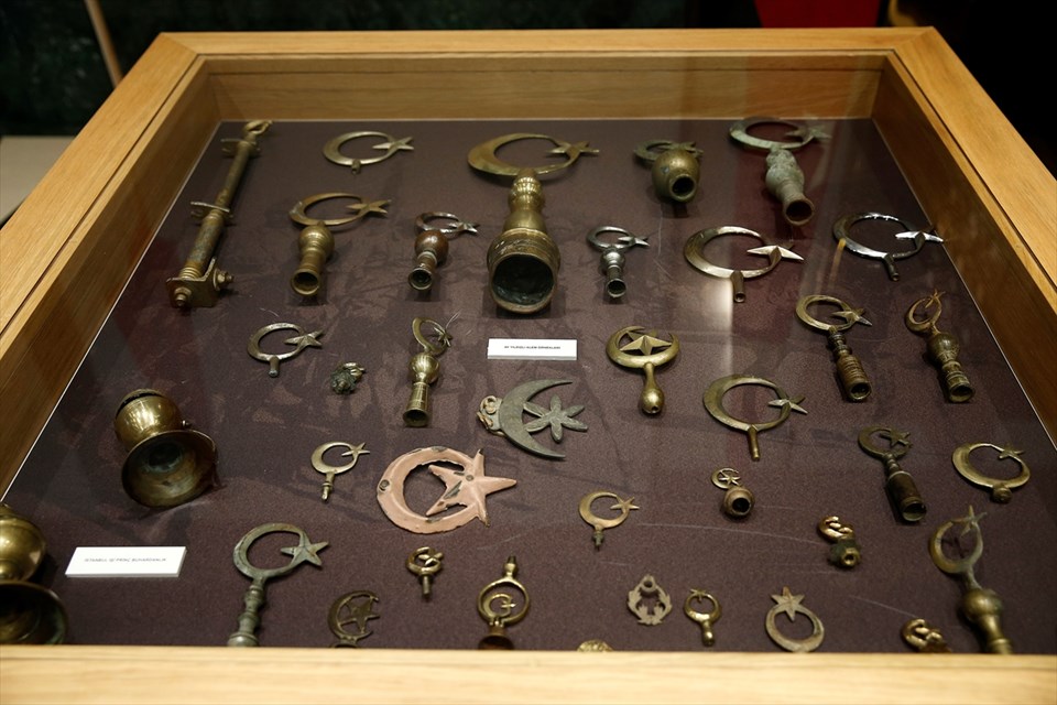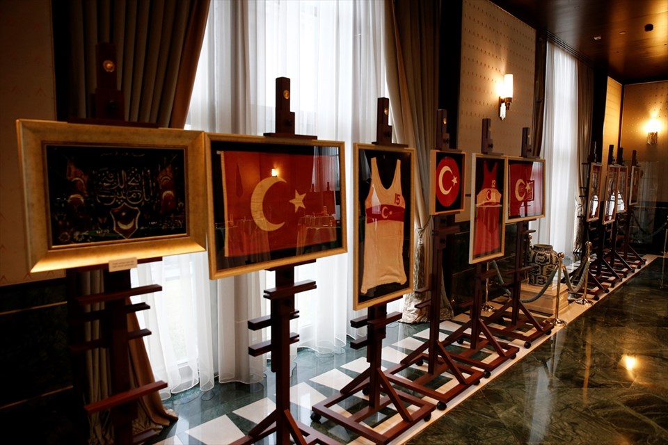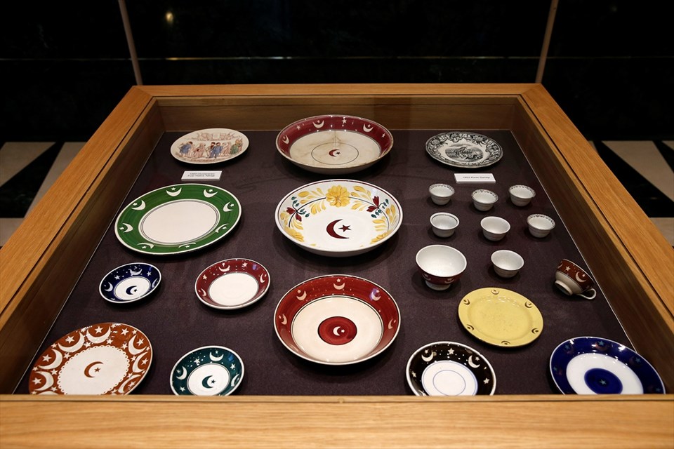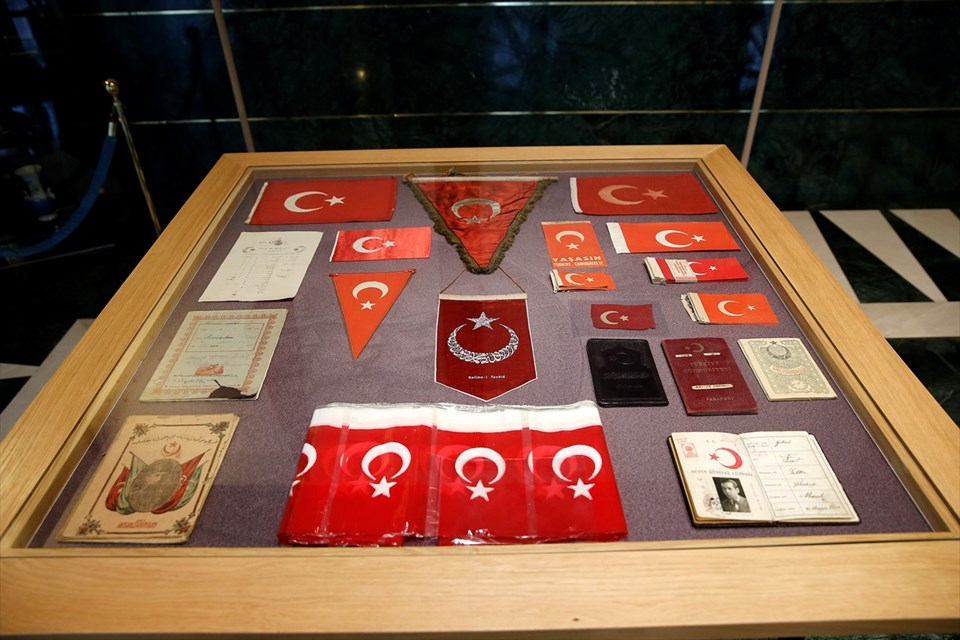 El yapımı bayrakların da yer aldığı sergide, uzerinde ay yıldızın bulunduğu evrakların yanı sıra formalar, alem ornekleri, Kurtuluş Savaşı propaganda kartları ile seramikler de beğeniye sunuluyor.