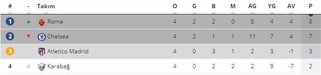 C Grubu maçında Roma ağırladığı Chelsea'yi 3-0 yendi ve liderliğe yukseldi.