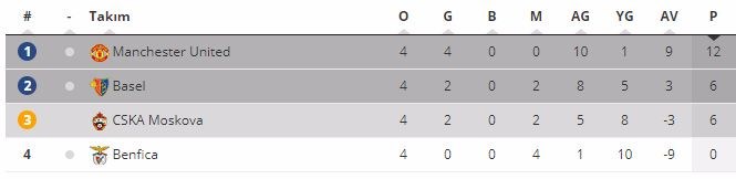 A Grubu'nda Manchester United, konuk ettiği Benfica'yı 2-0 mağlup etti.