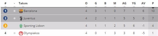 D Grubu'nda lider Barcelona deplasmanda Olympiakos ile golsuz berabere kaldı.