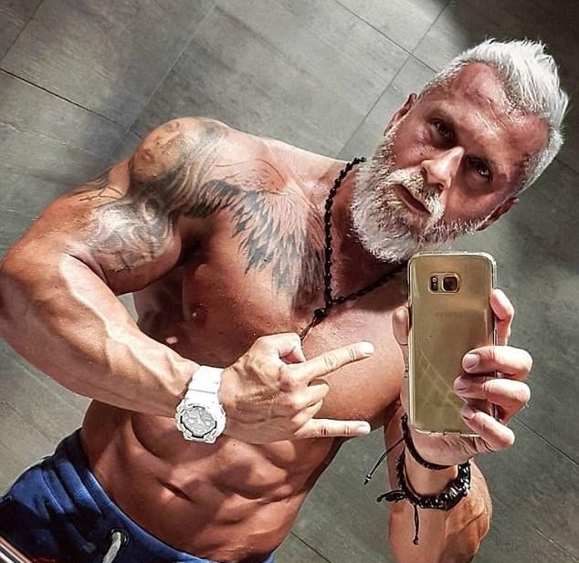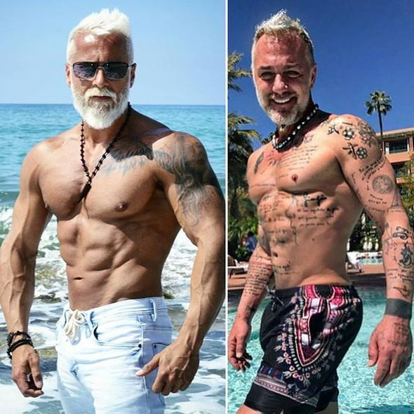Duzenli spor yaparak vucudunu geliştiren 35 yaşındaki Ladziak, saçlarını ve sakallarını beyazlatarak olduğundan yaşlı bir gorunumle çektiği fotoğraflarını sosyal medyada paylaşıyor.