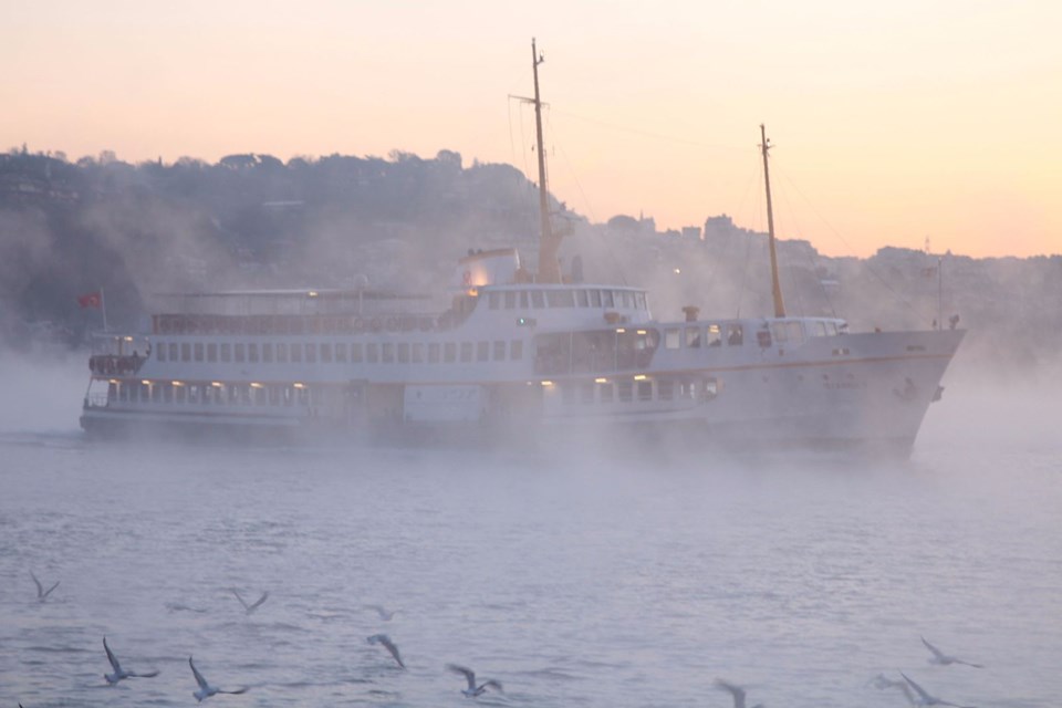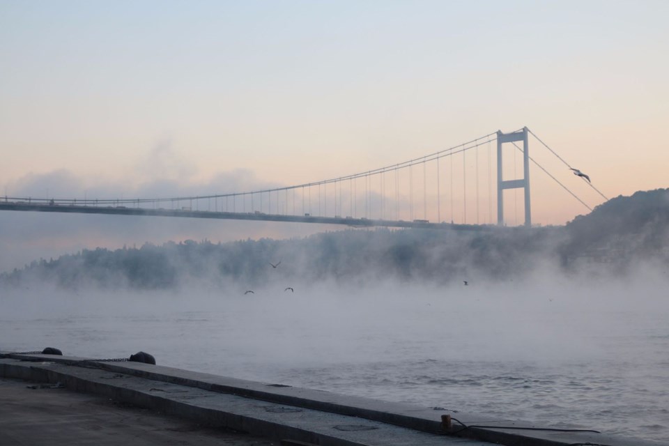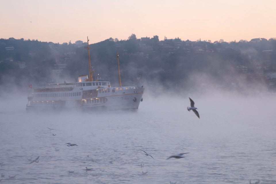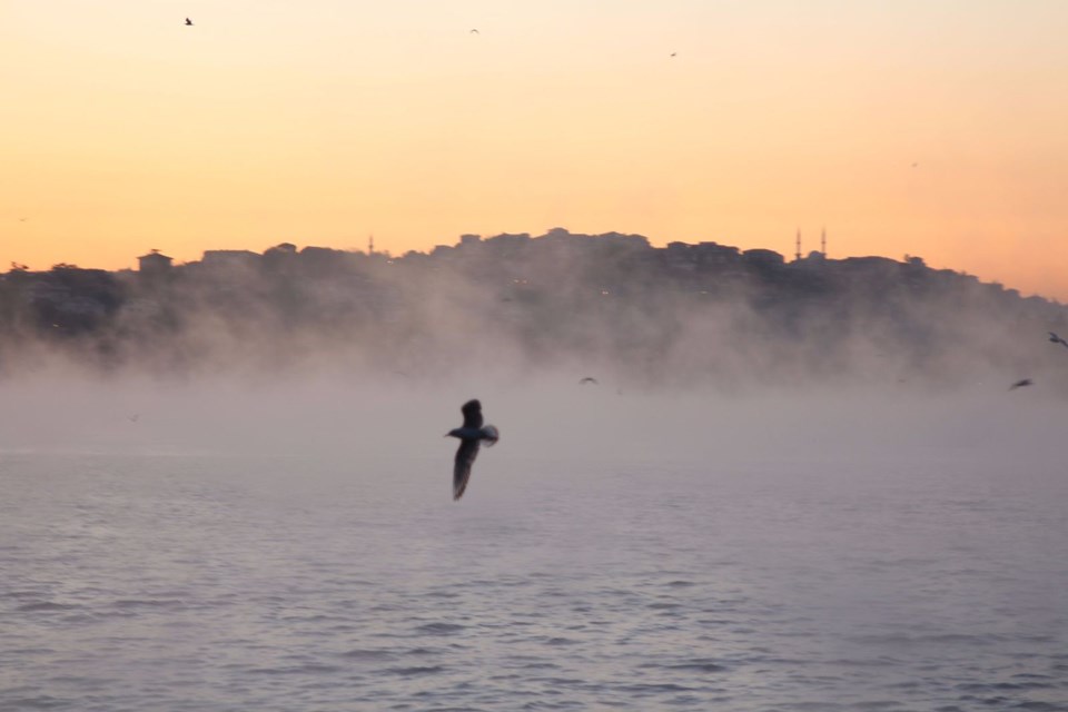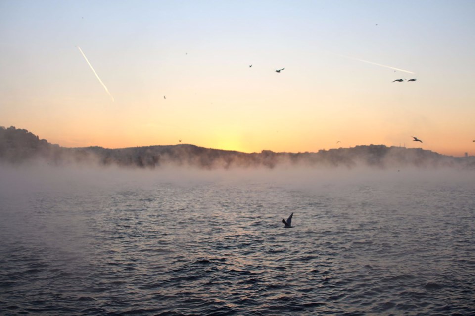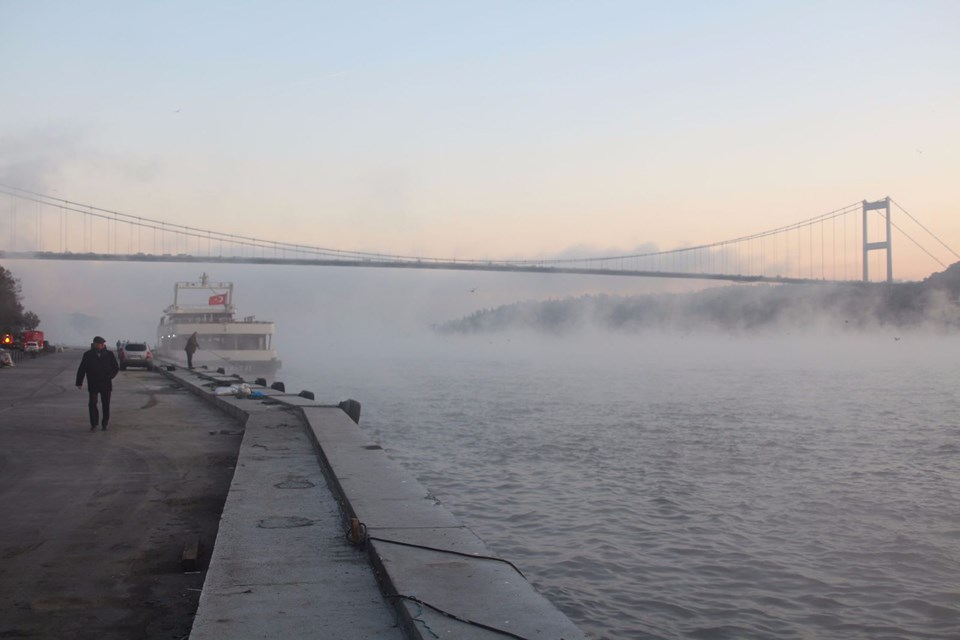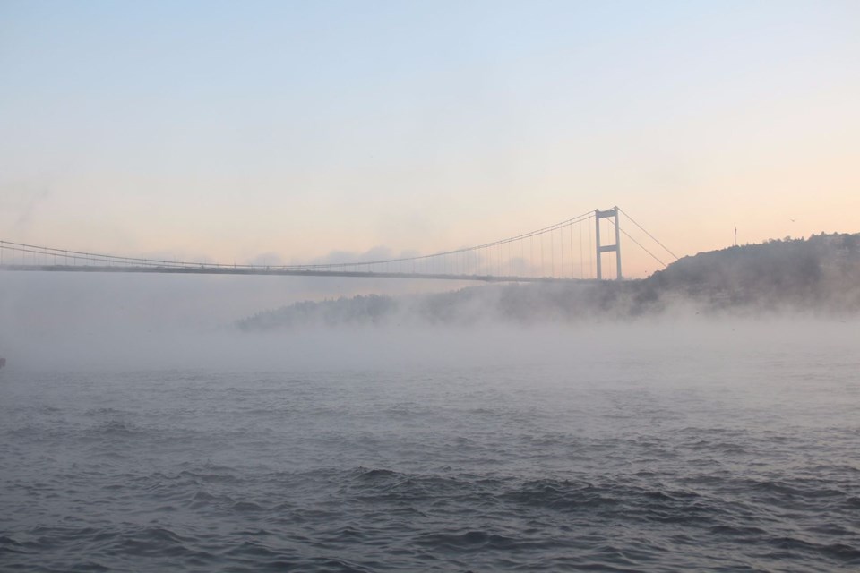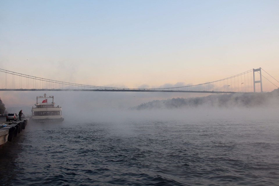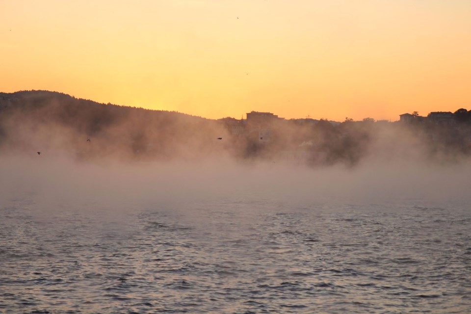 Denizin uzerini kaplayan sis bulutu boğazın guzelliğini ortaya çıkardı.