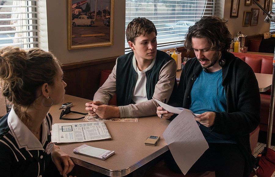 Edgar Wright, Lily James, ve Ansel Elgort in Baby Driver (2017)