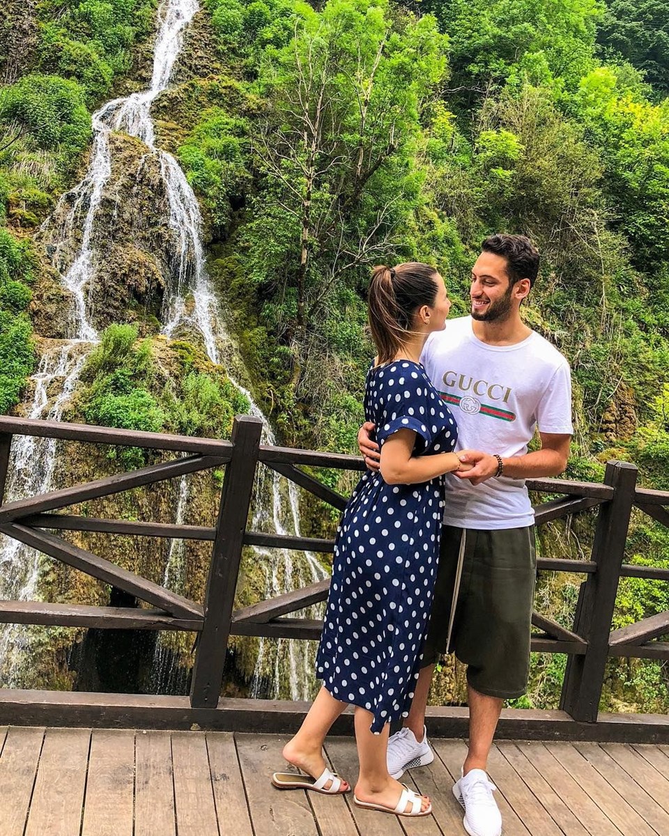 Sinem Çalhanoğlu ve ailesiyle beraber geldiği Giresun'da tatilini doyasıya yaşayan unlu futbolcu Mavi Gol'de eşine poz verdi.